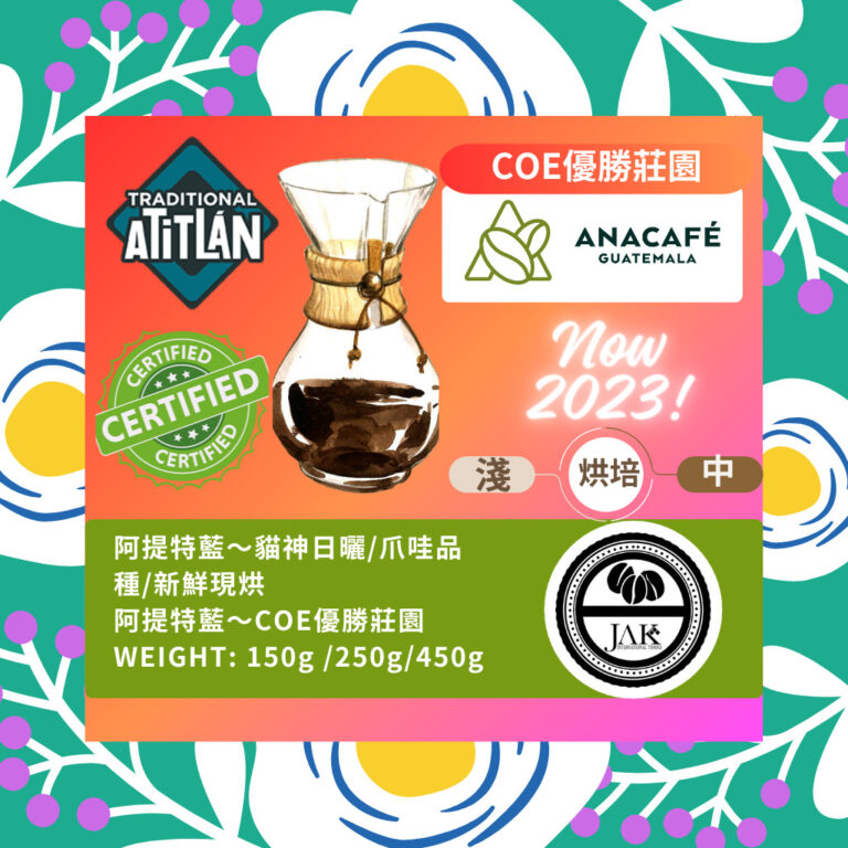 產區:阿蒂特蘭湖 品種:爪哇種 高度:1,500~1700公尺 年降雨: 1,800mm (75% RH)年產量: 7袋 (30 kg) 產季12月~3月 風味: 爪哇長粒豆種巧克力甜香、龍眼蜜香、堅果香、香料甜、茶香、奶油香風味乾淨、酸質明亮迷人,茶感、餘味甜感持久細膩,body黏度明顯且油脂感重,堅果巧克力帶點太妃糖風味的餘韻 FINCA Pampojila 為主莊園,對外比賽都以主莊園為主,Finca comet 是Pampojila 的四大子莊園之一,佔據了幾乎60%的Atitilan lake 區,生產的每一個環節都遵循親身實踐的理念,首先是在咖啡成熟的高度手工採摘咖啡櫻桃,然後在監督下曬乾以確保其乾淨和甜美的複雜性。精心監控的發酵過程產生了異常明亮的酸度和清晰的風味。出於這個原因,這款瓜地馬拉的 Atitlan 豆有一種清脆、平衡的柑橘風味,濃郁而豐富,並帶有互補的酸味和甜味。 瑪雅人將這片非凡的土地命名為 Pampojilá [pam-poh-hee-lah/pãm.po.xi.ˈla]:「在雲霧中升起的土地」。我們的農場位於阿蒂特蘭火山中部,位於阿蒂特蘭湖上方,擁有豐富的火山土壤,南風幾乎每天都會帶來潮濕的雲層,為咖啡樹提供天然的午後陰涼。 Finca Pampojilá 於 1800 年代末成立並正式註冊。 150 多年來,我們的農場一直在阿蒂特蘭湖南側美麗的山脈中種植咖啡,幾十年來它一直以高品質咖啡而聞名於歐美很少機會來到亞洲。 2012…
